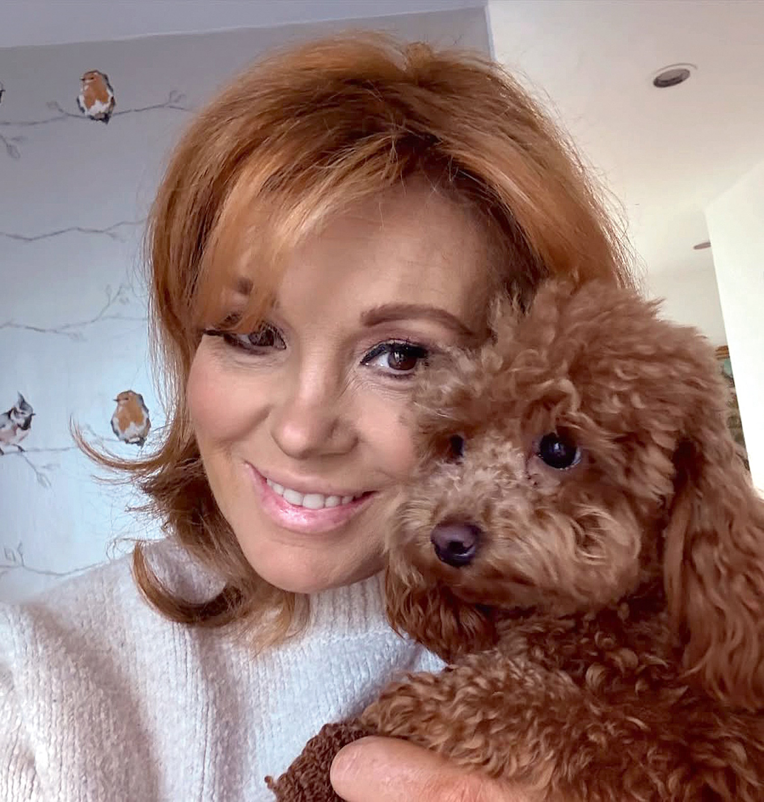 „Az alap hajszínem barna. A vörös különböző árnyalatai pedig éppen attól függnek, hogy mennyi ideje tettük fel a hajhabot. Kezdetben élénkebb vörös, ám ahogy telnek a napok, egyre barackosabb színű lesz. De megfigyeltem, hogy van egy pont, amikor a kutyusunk, Mancika bundája és az én hajszínem szinte teljesen egyforma” – árulja el viccesen Claudia.