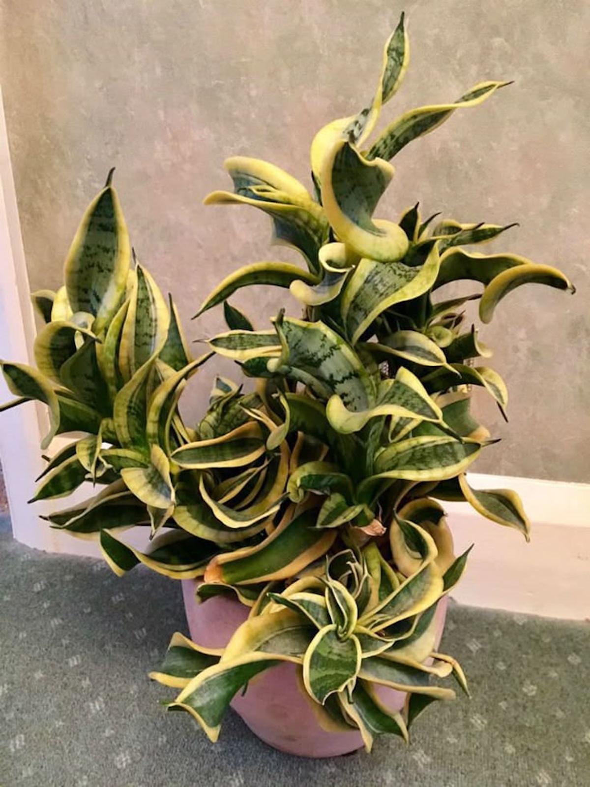Vékony, ceruzaszerű levelei kis szökőkútként törnek fel, és idővel enyhe spirált formálnak. Csíkos mintázata miatt különösen dekoratív íróasztalon vagy kisebb terekben.
