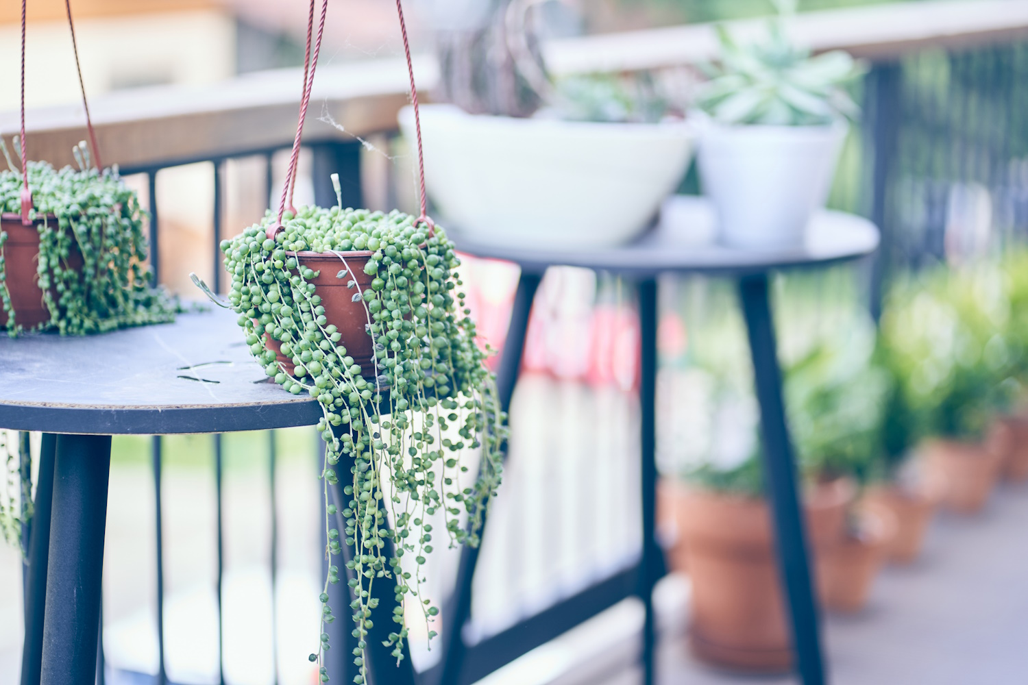 Leomló vagy kúszó hajtásai hosszú, légies zöld vízesésként díszítik a polcokat és a függő kaspókat, miközben a levelek apró gömbjei a víztartalékot is biztosítják. Pont ez adja a különlegességét: ha egyszer-egyszer kimarad az öntözés, akkor sem sértődik meg.