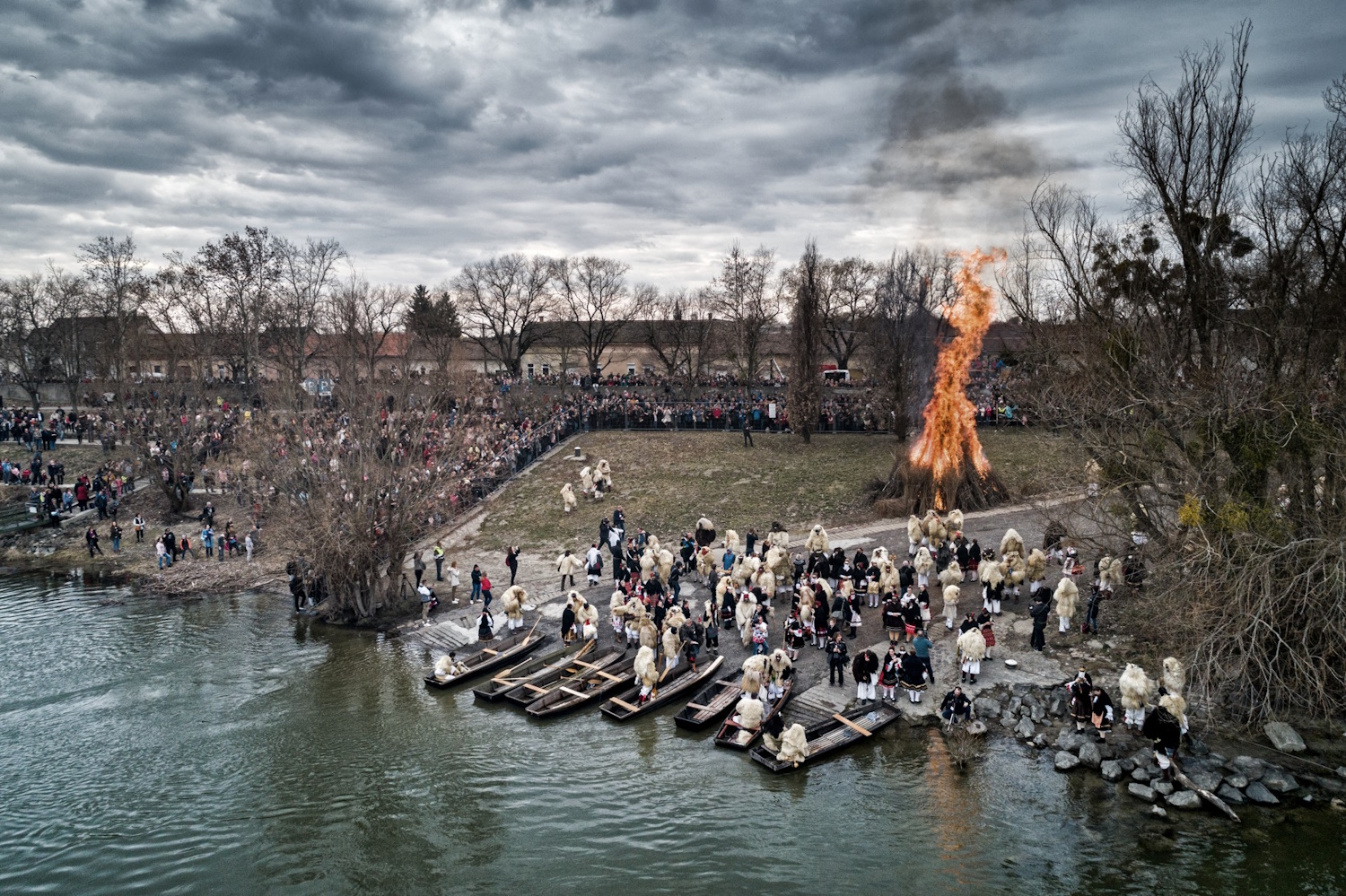 A Farsangvasárnapi menet február 15-én indul: a busók és jankelék a Duna-parttól vonulnak a főtérig, ahol este óriási máglya körül táncolnak. Húshagyókedden ismét fellángol a tűz, ekkor égetik el a telet jelképező koporsót.